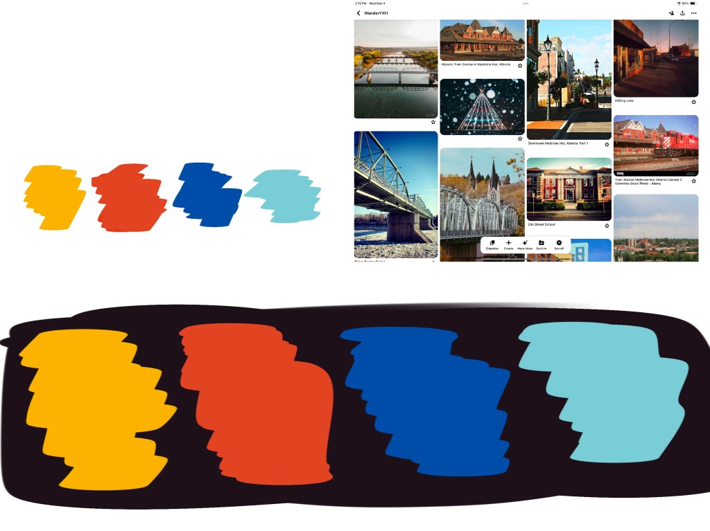 I began the re-design process by looking up images of Medicine Hat and saving the ones that I thought best encapsulated the city. Then I eyeballed the 4 main colours that appeared the most and represented aspects of Medicine Hat (the deep blue of the sky, the red orange of the brick buildings, the light teal of Finlay Bridge, and the gold yellow of the grass.) and used these as the basis for the palette.